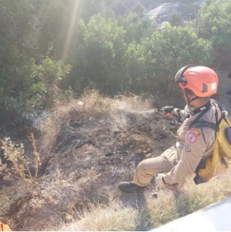 Incêndio em vegetação próxima ao Forte São Mateus mobiliza Corpo de Bombeiros em Cabo Frio